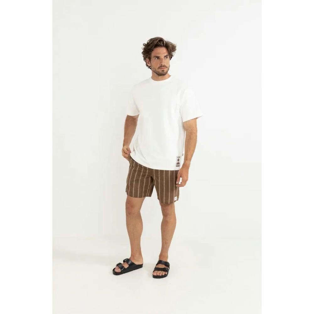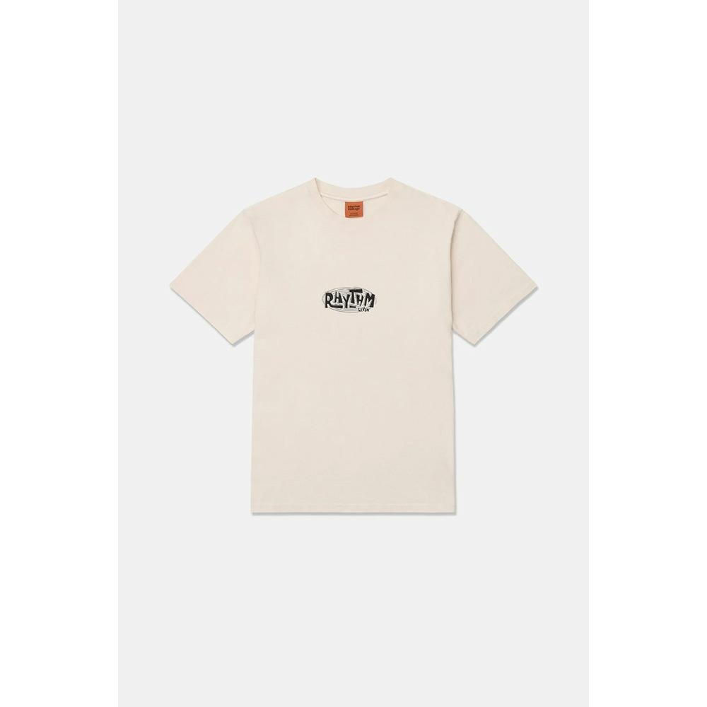 Vintage fit 1x1 rib knit neck band Screen print artwork Washed & dyed for vintage hand feel Rhythm trims Composition: Cotton jersey, 200gm Colour: ECRU