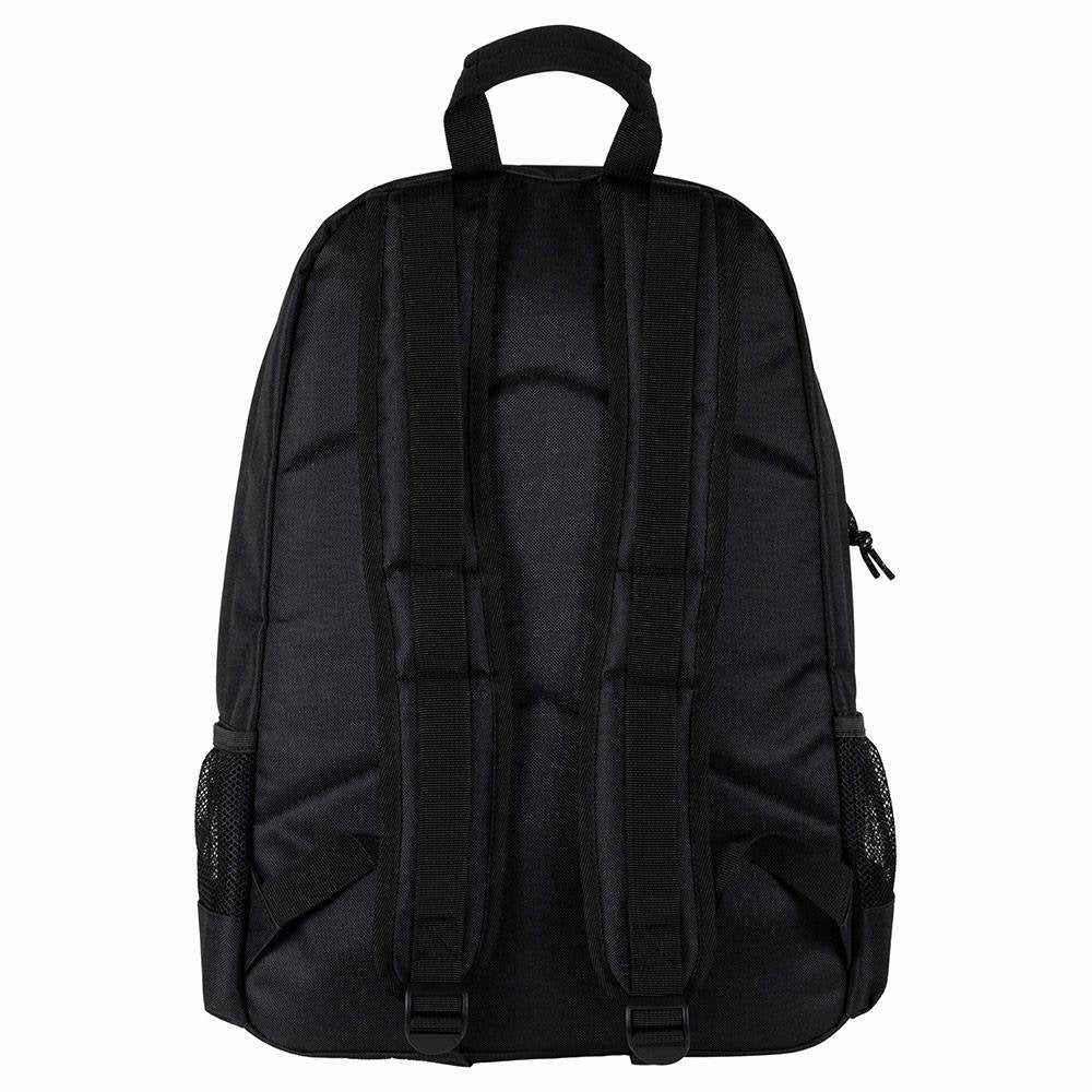 Screen printed graphic on front Dual zippered compartments Padded laptop sleeve with Velcro strap in back compartment Stationery organiser flap and hidden keyring in front compartment Water bottle holder on...