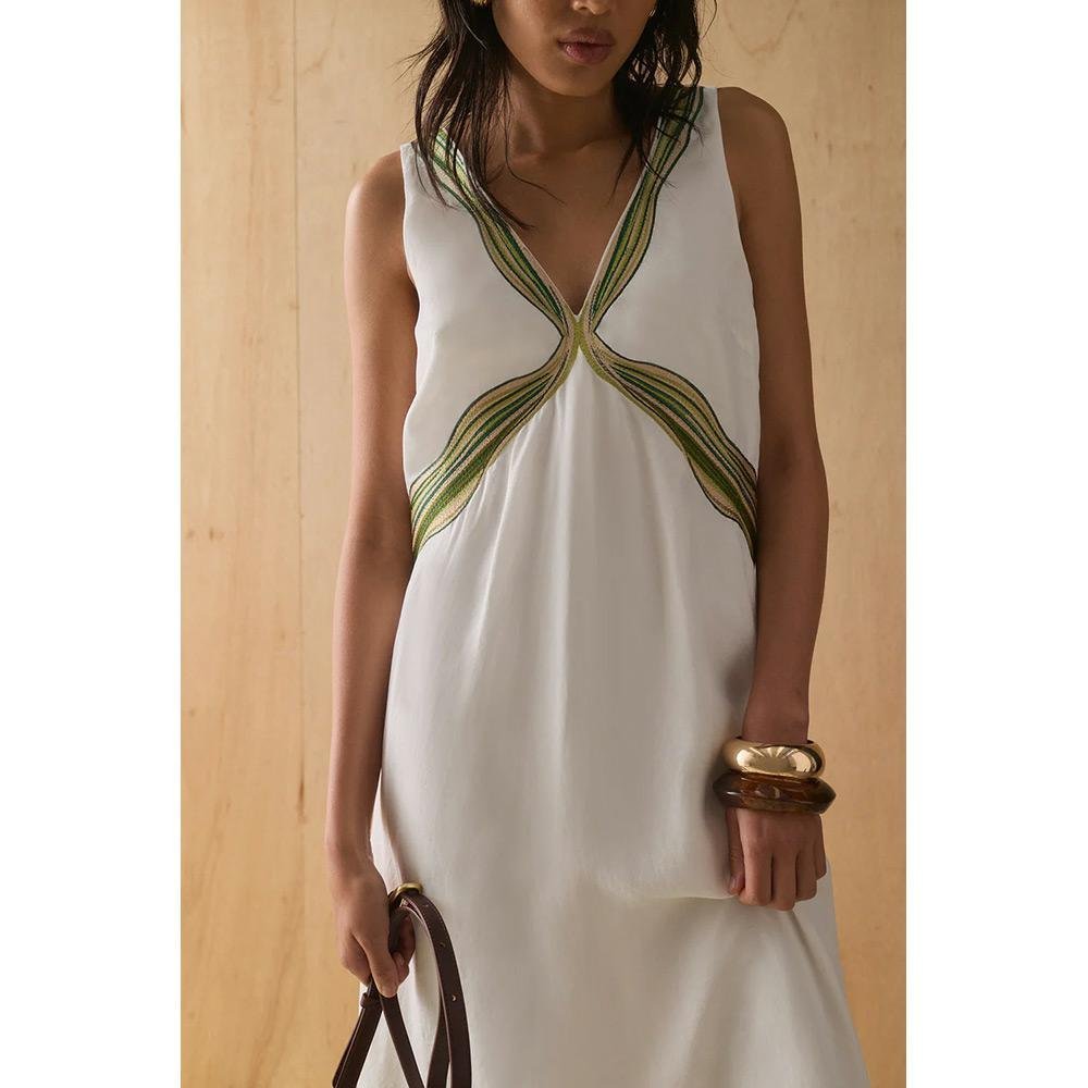 The Rhapsody Dress is a perfectly flattering maxi shape, with an elegant v-neckline and full hem Complementing its silhouette is a gorgeous botanical inspired embroidery designed in-house Maxi length V-neckline...