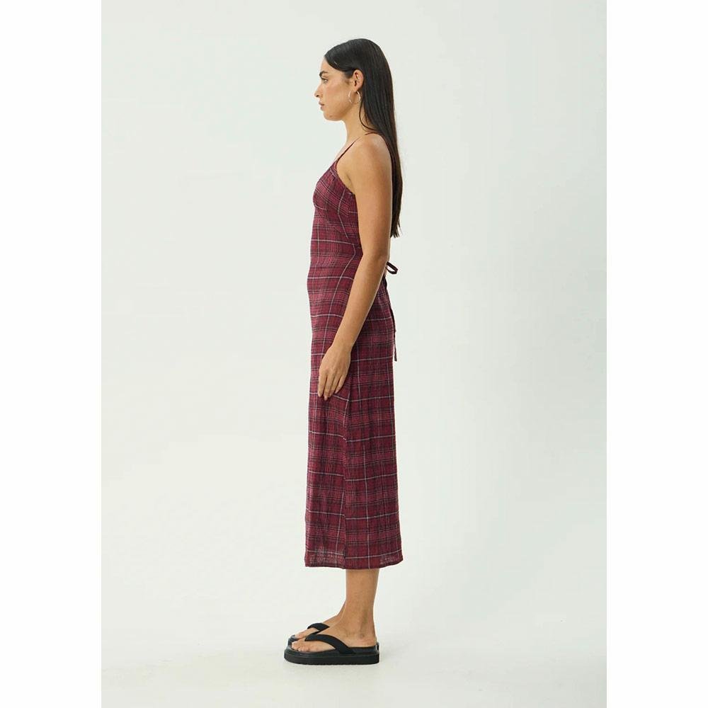 A flattering halter maxi, joining the hemp seersucker line up in a red check V-neck tie halter and low back Gathered centre front bodice and centre front split Cut in...