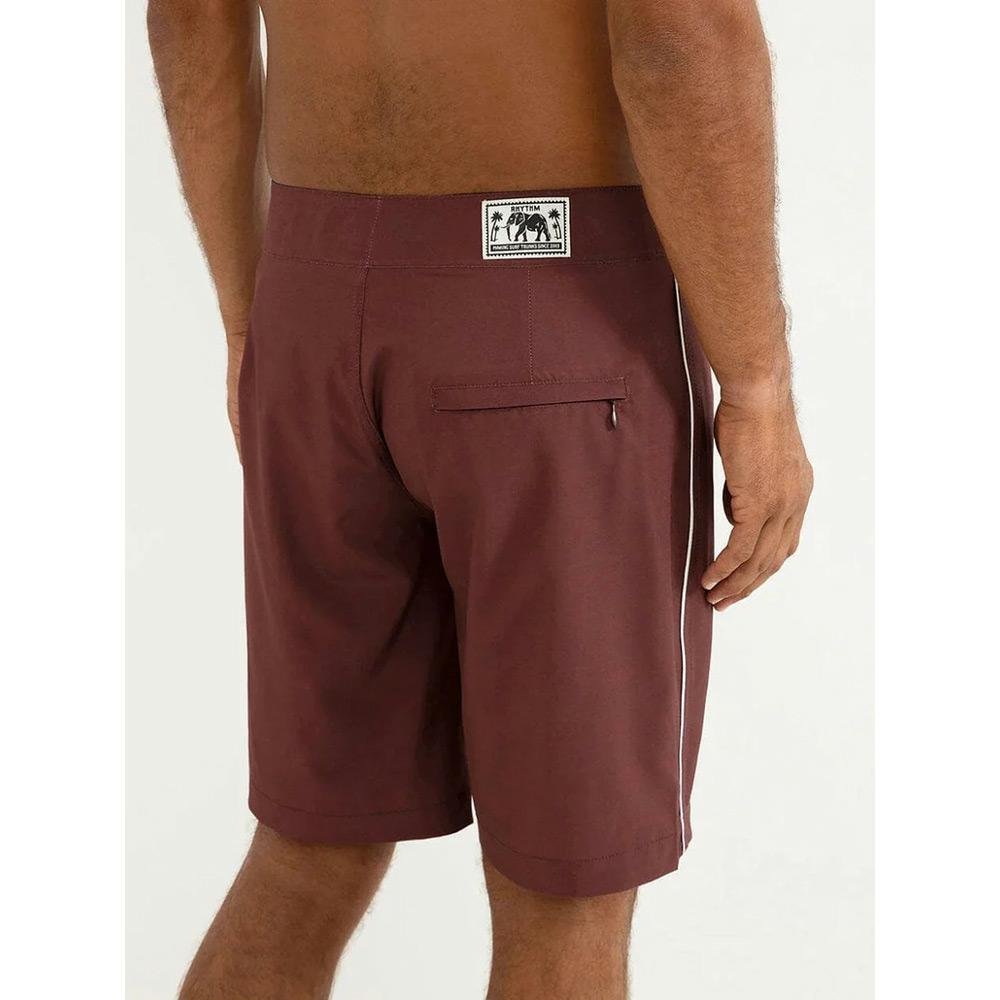 19" boardshort Fitted waist Constrast stripe on legs Logo detail on leg and back of waistband Secure zip back pocket 92% Polyester / 8% Spandex Colour: MERLOT