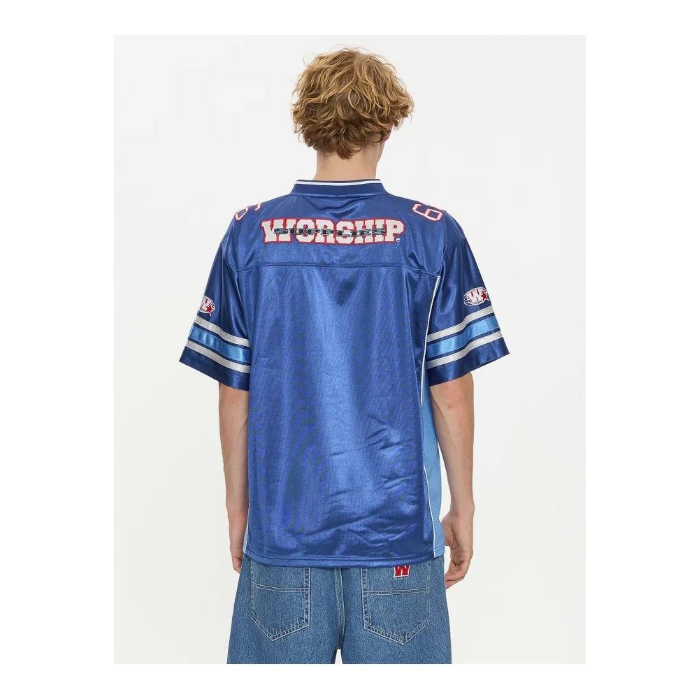 Football style jersey tee Graphic print on front, back and sleeves Mesh detail under arms Midweight polyester fabric Colour: BLUE DEPTHS