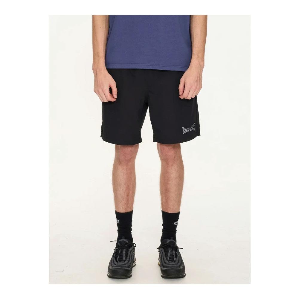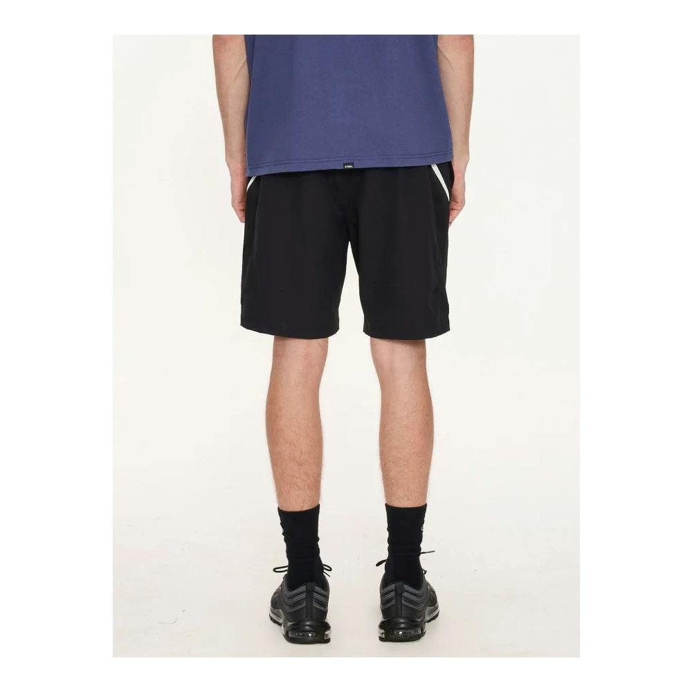 Performance boardshorts Upcycler 4-way stretch (recycled textiles & PET) 20" outseam; fixed waist Engineered fit/panels Micro Repel DWR Back patch pocket Colour: BLACK/WHITE