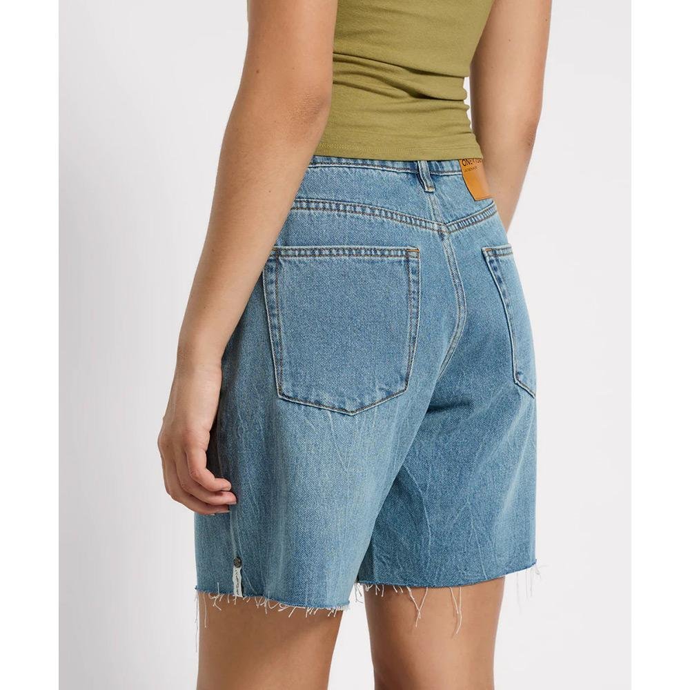 Low waist Semi-fitted through the hip Relaxed frayed & curved hem line 100% Cotton Colour: CIAO BLUE