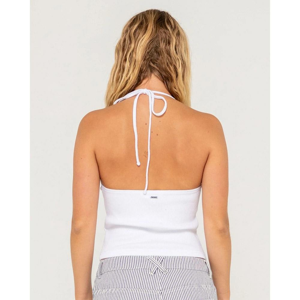 Ribbed halter neck top Keyhole front details Slim fit Skimmer length Composition: 95% Cotton / 5% Spandex Colour: WHITE
