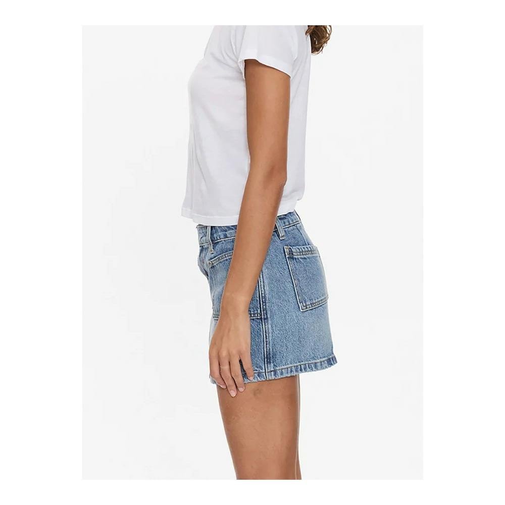 Cut from lightweight cotton denim Ultra-short silhouette sits mid to low rise and brings just the right amount of feminine attitude Features a textured ribbed denim wash in a bold,...