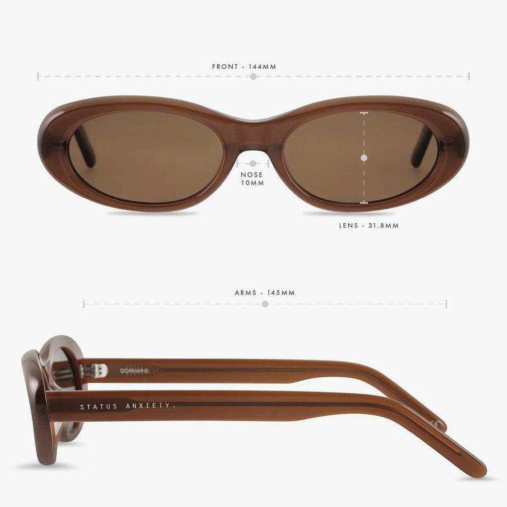 Premium acetate frame Polarised CR-39 lenses Category 3, UV400 (100% UVA and UVB ray protection) Comes in a recycled stock Status Anxiety branded box with a microfibre pouch